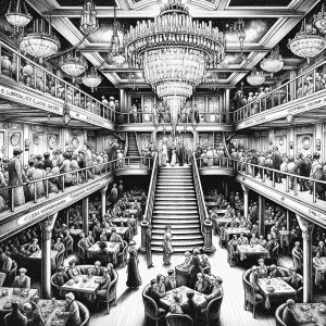 John Astor IV observed the swift and efficient boarding process for the first-class, remarking on the “personal stewards for each suite.” In contrast, Annie Kelly described a more chaotic experience, “It took hours to get aboard, and the space is cramped with so many families and faces.”